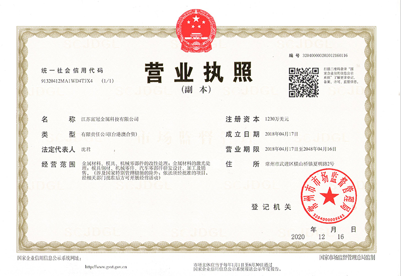 江蘇富冠金屬科技有限公司(以下簡(jiǎn)稱:“公司”)成立于2018年4月,隸屬于鑫昌泰集團(tuán),是常州市經(jīng)開區(qū)招商引資的重點(diǎn)外資企業(yè),注冊(cè)資本1230萬美元,座落于常州市經(jīng)開區(qū)橫山橋智能裝備產(chǎn)業(yè)園,占地面積22762.8平方米,員工總數(shù)100人。公司主要經(jīng)營:金屬材料、模具、機(jī)械零部件的改性處理;金屬材料的激光處理;模具鋼材、機(jī)械零件、汽車零部件研發(fā)設(shè)計(jì)、加工及銷售。并具有真空淬火、普通淬火、調(diào)質(zhì)、去應(yīng)力回......
